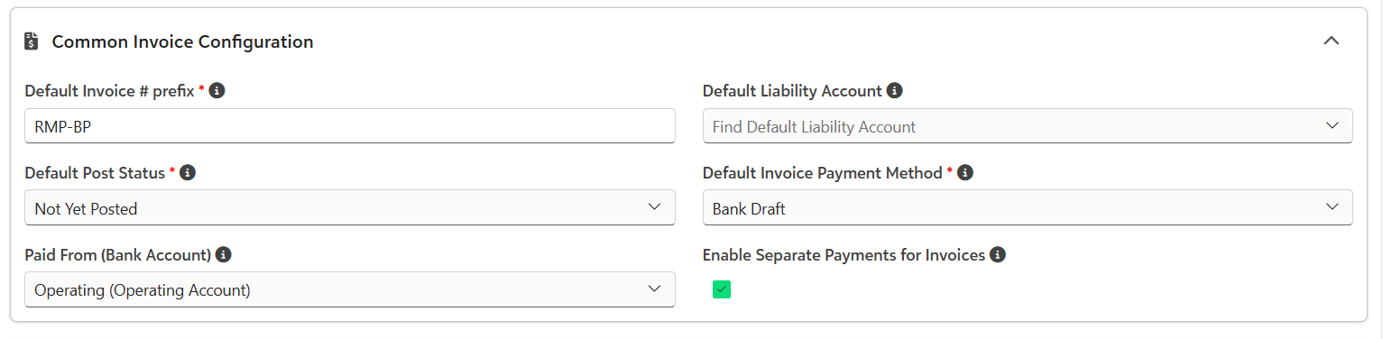- Post Status - Determine the default post status when the invoice is created. Options are Not Yet Posted or Do Not Post.
