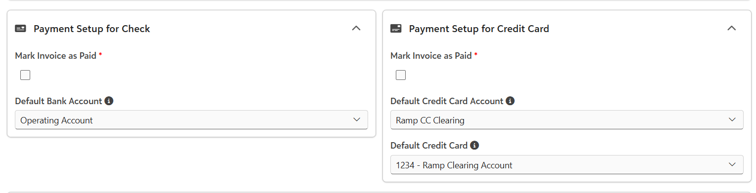 - Default Bank Account - Select the default bank account to be used when the payment is check.