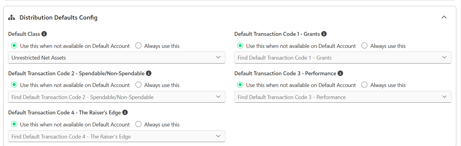 Distribution Defaults Config